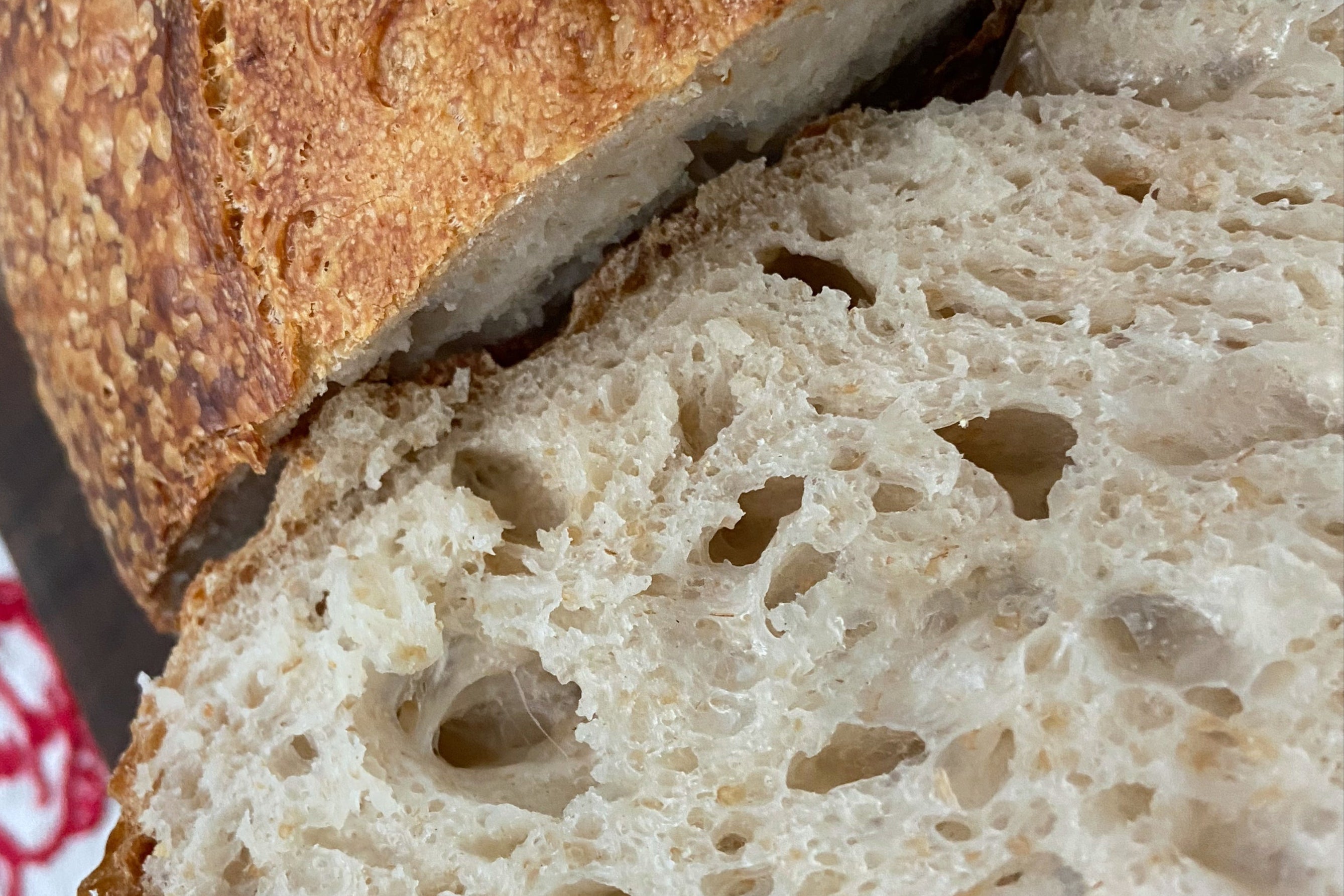 To freeze sourdough bread, place it in a freezer-safe bag or container. You can freeze it whole, in halves, or sliced for convenience. To defrost, let whole loaves thaw at room temperature (still covered), then reheat in a 350°F oven for 10–15 minutes to refresh the crust. Slices can be toasted straight from frozen.